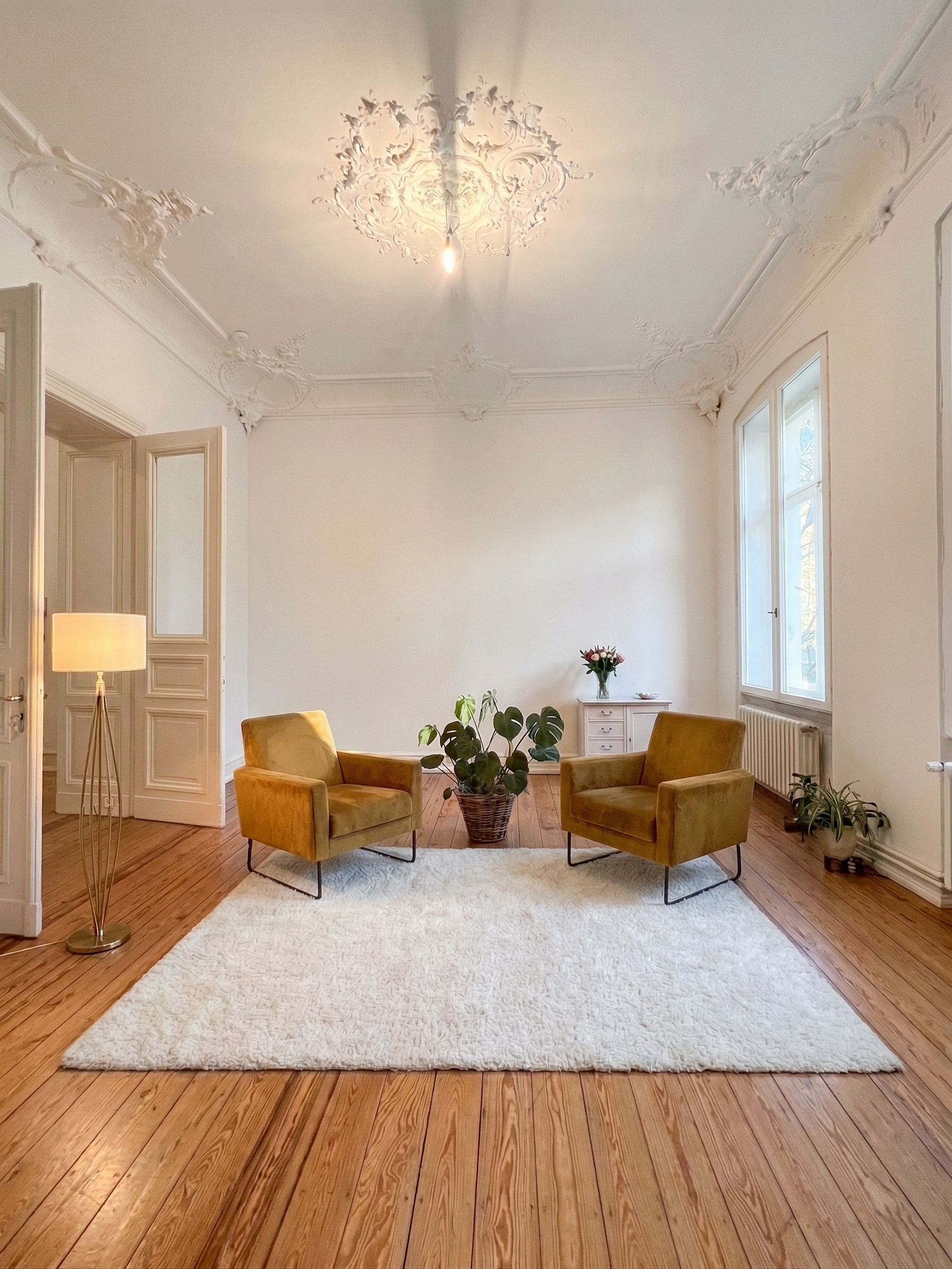 Sie arbeiten in hellen, ruhigen Praxisräumen in einem stilvollen Altbau.